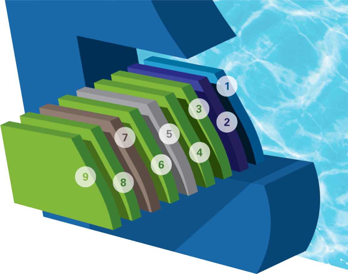 The same thing happens with a fiberglass pool. It is composite and manufacturer in multiple layers, with each layer serving to maximize the strength and durability of the pool. So you can also think of our pools as a sandwich of strength. That’s why we refer to our unique manufacturing method as our Composite Sandwich of Awesomeness.